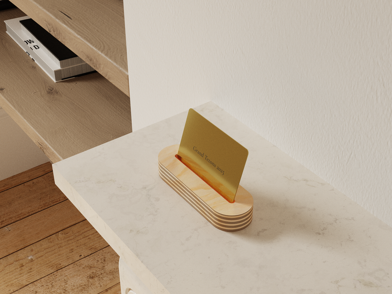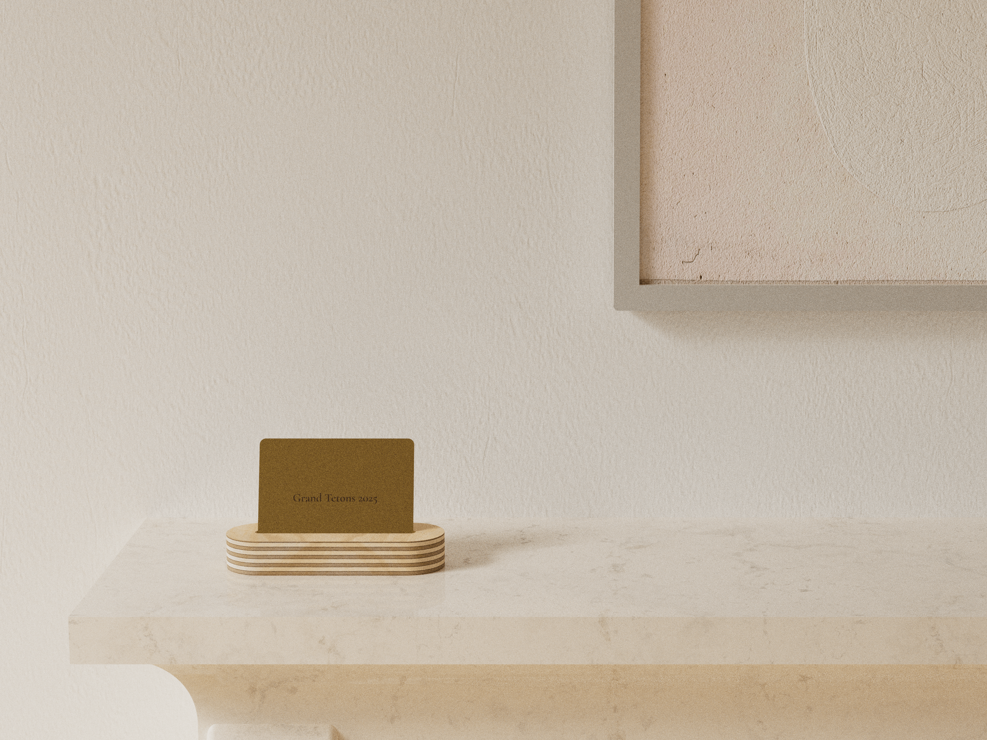 Evergram postcards are the size of a business card, 0.8mm in thickness, and crafted from solid brass, giving them a timeless, durable weight in the hand, in a footprint that fits neatly in your wallet.